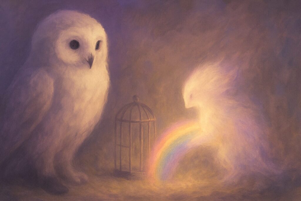 In dit sprookjesachtige Marco-verhaal ontdek je waarom regenbogen niet zomaar verdwijnen, maar liefdevol worden opgegeten door magische Regenboogeters. Wanneer een volk deze lichtwezens misbruikt en opsluit, dooft niet alleen hún licht — maar ook dat van de wereld. Pas wanneer Marco een bijna uitgedoofde Regenboogeter bevrijdt, keren de kleuren terug. Een verhaal over vrijheid, misbruik en de kracht van zuivere trilling.